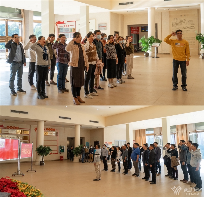 參觀結(jié)束后,公司黨員干部面向鮮紅的中國共產(chǎn)黨黨旗,莊嚴地舉起右手,重溫入黨誓詞!拔抑驹讣尤胫袊伯a(chǎn)黨……隨時準備為黨和人民犧牲一切,永不叛黨。”