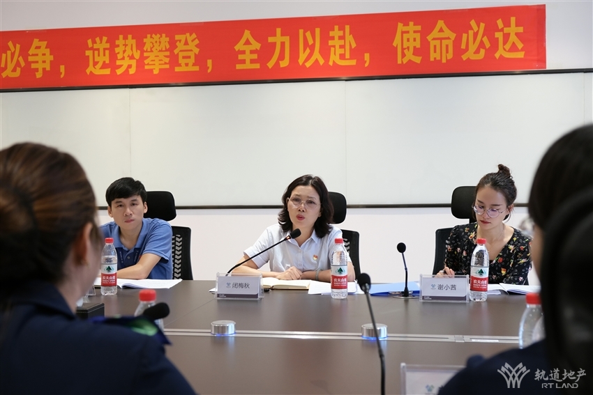 參觀結束后,閉梅秋一行聽取了軌道地產咨詢公司上半年經營工作情況匯報。劉燕從公司目前經營范圍、運營模式、企業(yè)定位、2022年上半年營銷工作措施及成效、黨風廉政建設工作情況等進行全面匯報。與會人員就目前在營銷業(yè)務工作方面存在的難點、經營困境進行了交流討論。