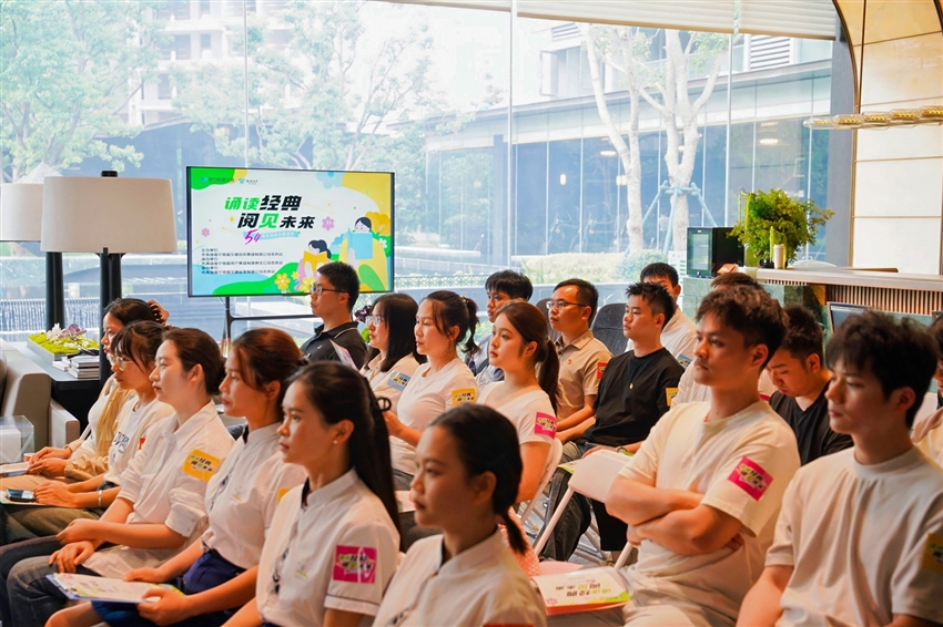 春深恰逢讀書(shū)日,正是青年奮楫時(shí)。在第76個(gè)“五四青年節(jié)”到來(lái)之際,為貫徹落實(shí)習(xí)近平總書(shū)記關(guān)于青年工作的重要思想,引領(lǐng)廣大青年形成愛(ài)讀書(shū)、讀好書(shū)、善讀書(shū)的濃厚氛圍。4月28日,由南寧軌道交通投資集團(tuán)團(tuán)委主辦,南寧軌道地產(chǎn)集團(tuán)團(tuán)委承辦的“誦讀經(jīng)典 閱見(jiàn)未來(lái)”“五四”青年悅讀主題活動(dòng)在軌道云著濱河劇場(chǎng)拉開(kāi)序幕。來(lái)自南寧軌道交通投資集團(tuán)各級(jí)團(tuán)組織及聯(lián)建單位的60余名青年代表相聚在此,搭建起了一場(chǎng)跨越百年的青春對(duì)話。