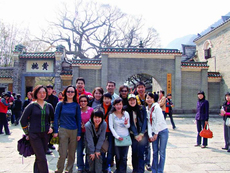第三日清晨,整裝待發(fā)八點(diǎn)前往黃姚古鎮(zhèn)。賀州是粵東的一座新興城市,而黃姚,卻有著近千年的厚重。從古鎮(zhèn)入口前左邊的一條岔路走進(jìn)去,首先觸目的便是一條清澈的小溪、一棵參天的古榕樹,我們開始細(xì)細(xì)觀賞這個(gè)小鎮(zhèn)。古榕的軀干伸向小溪,又從空中垂下縷縷氣根,與水中的倒影連為一體。溪邊水井里清可見底,偶有小魚游動。據(jù)說黃姚是按九宮八卦陣式布局,鎮(zhèn)上的石板街有8條,共99999塊青石板,最早鋪砌于清順治年間。年代久遠(yuǎn),不知有多少人走過,青石板已被磨得像鏡子般光滑,隱約泛著人影。橋下的姚江,如今看水依舊清碧,可是繁華不再,顯赫的牌匾也只能靜靜地訴說著昔日的輝煌。石板路的小村落很安靜,人們過著日常的生活,村婦們在井頭溪邊,淘菜洗衣,交流信息,菜渣、閑話都隨溪水流去,并不對外來的游客有格外的好奇。孩子們快樂地嬉戲著,在那些蜿蜒的巷子里不時(shí)冒出他們快樂的喧嘩。宗祠府第這樣的舊時(shí)輝煌不經(jīng)意地散布于鎮(zhèn)上的民居之中,亭閣前的聯(lián)匾,記錄著文人騷客對黃姚的鐘愛,只是年代遠(yuǎn)去,如今物是人非。陽光下的青石板路上有時(shí)候也會躺著狗或者貓,你從它們身上跨過去的時(shí)候,它們會懶懶地翻翻眼皮,然后繼續(xù)睡在陽光里。雞們顯得勤快些,會邁著方步走在你前面東看看西瞅瞅,如果你不急,它會一直走在你前面,時(shí)間對它們沒有任何意義。還有那些老房子,任何一座都可能藏著一個(gè)故事。結(jié)了蛛網(wǎng)的窗欞恐怕已有了幾百年的歷史,但是沒有人把這當(dāng)成了不得的事情,一切如常,平靜隨意。