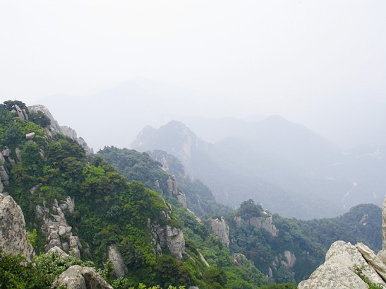 我們的行程很快,在下纜車后迅速到達(dá)南天門(mén)開(kāi)始向玉皇頂進(jìn)發(fā),然后終于來(lái)到了向往已久的泰山摩崖石刻處。作為泰山的標(biāo)記之一,站在《紀(jì)泰山銘》的刻石下面,仰望這部唐玄宗的"封"山之作,頓時(shí)覺(jué)得自己十分渺小,泰山獨(dú)有的莊嚴(yán)神圣和巍峨磅礴撲面而來(lái),讓我完全拜服于泰山的獨(dú)特魅力之中。隨后我們登上了泰山之巔--玉皇頂。在玉皇頂回身俯視天地,終于在課本之外親身體會(huì)感受到杜甫"會(huì)當(dāng)凌絕頂,一覽眾山小"這句千古絕唱的韻妙之處,也真切的領(lǐng)會(huì)到"登泰山而小天下"的無(wú)與倫比的雄偉霸氣所在。
