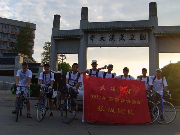 每次翻開校內上那個名為《踩著單車去看海》的相冊時,腦?倳ⅠR浮現(xiàn)出我記憶深處那幾張年輕而又有些稚氣的臉孔。東子、梁子、小權、凱子、小超。那一年我20歲,大二。當我第一次聽到他們幾個要從武漢騎車去上海時,首先覺得甚是不可思議,接著從心底佩服這幫家伙。但,那時候的我還未曾想過自己也會成為這個團隊中的一員。